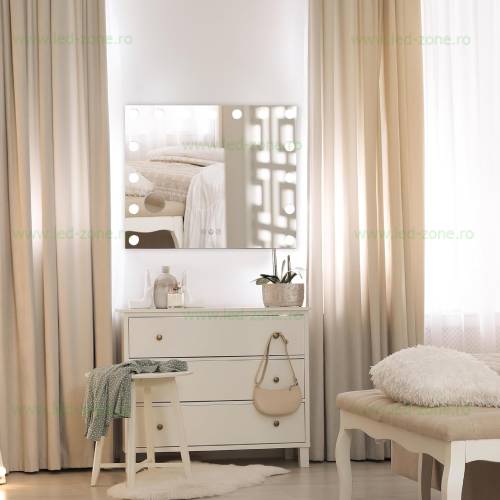 Oglinda machiaj cu iluminare LED si senzor touch. Sistem control touch usor de utilizat. Iluminarea indeplineste un rol important in oglinzile noastre. Datorita tehnologiei LED avansate, va puteti bucura de lumina naturala si de consumul mai redus de energie. Reglaj intensitate lumina, lumina naturala a zilei printr-o simpla atingere.