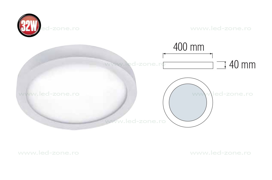Descriere Panou LED 32W Rotund D40cm Aplicat Alb