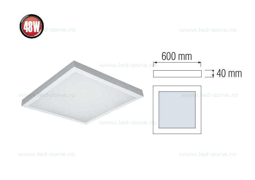 Specificatii Panou LED 48W 60x60cm Aplicat Alb Backlight