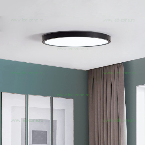 Panoul LED de 50W cu diametrul de 40 cm ofera o iluminare puternica si versatila, fiind ideal pentru spatii moderne care necesita un sistem de lumina personalizabil. Cu functia RGB-CCT, permite selectarea culorii dorite si reglarea temperaturii de culoare intre alb cald, alb natural si alb rece, asigurand o atmosfera potrivita oricarui moment. Designul rotund cu rama neagra si grosime redusa de doar 50 mm ii confera un aspect elegant si minimalist, perfect pentru camere de zi, dormitoare, birouri sau spatii comerciale. Include telecomanda pentru control facil al intensitatii si culorii luminii.