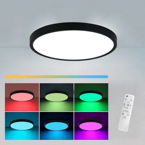 Descriere Panou LED 50W D-40cm Aplicat Negru RGB-CCT cu Telecomanda