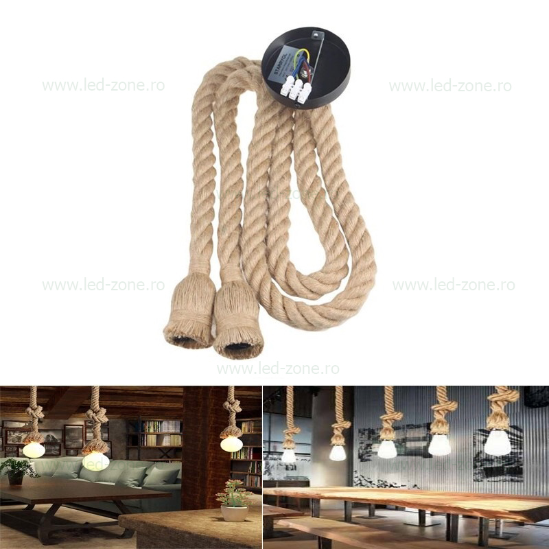Pendul 2 Socluri E27 Rustic este potrivit pentru iluminat decorativ rustic.