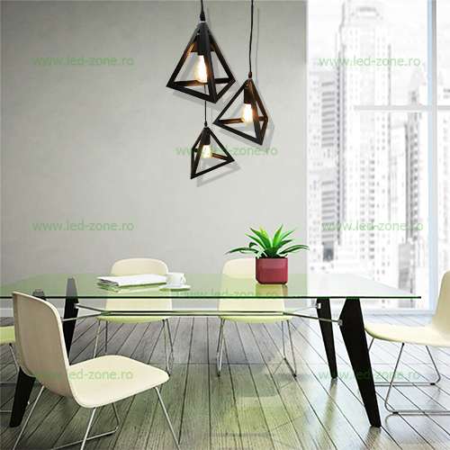 Descriere Pendul 3 Socluri E27 Vintage Triunghi