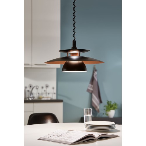 Pendul BRENDA 31666, Ø430 mm, E27, 1X60W, IP20, plastic, oțel, negru, oțel, negru, cupru