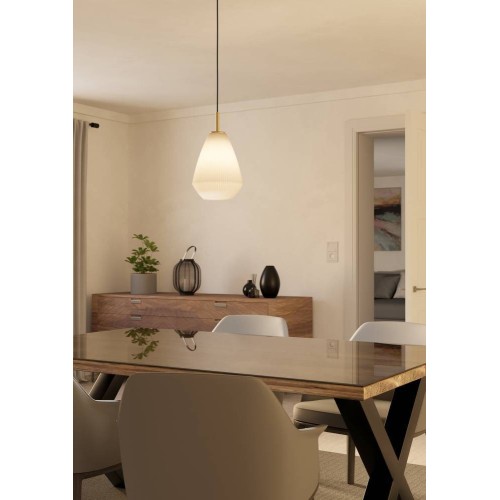 Pendul CAPRAROLA 900812, Ø200 mm, E27, 1X40W, IP20, oțel, alamă matisată, sticlă satinată, nisipie