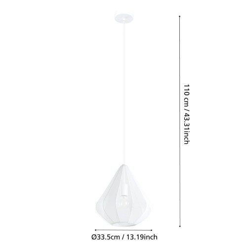 Pendul DOLWEN E27 40W IP20 Ø335mm 43996, oţel, alb