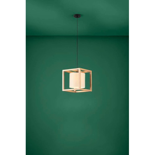 Pendul GRANADOS 390099, E27, 1X25W, IP20, oțel, lemn negru, maro, textil, alb