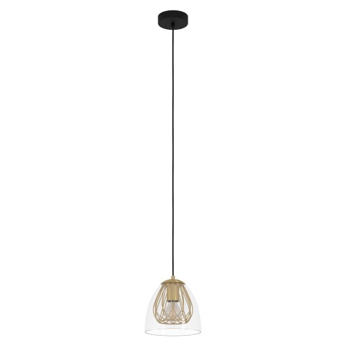 Pendul JAZMINIA 390037, Ø195 mm, E27, 1X40W, IP20, oțel, negru, alamă, sticlă, transparentă