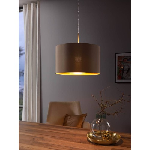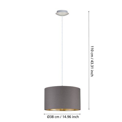 Pendul MASERLO 31602, Ø380 mm, E27, 1X60W, IP20, oțel, nichel mat, textil, gri maroniu, auriu