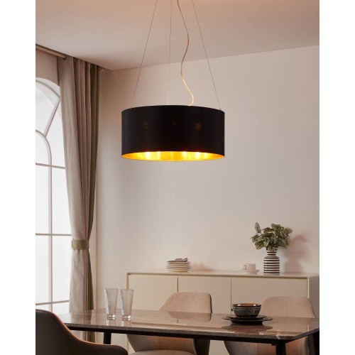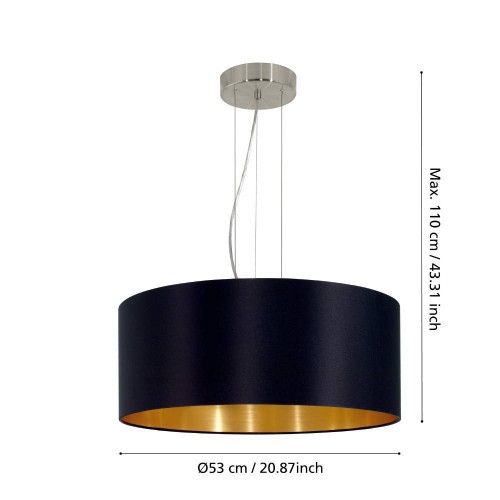 Pendul MASERLO 31605, Ø530 mm, E27, 3X60W, IP20, oțel, nichel mat, textil, negru, auriu