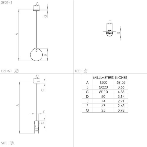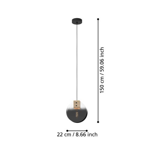 Pendul MILLENA 390141, Ø220 mm, E27, 1X40W, IP20, oțel, negru, sticlă aburită