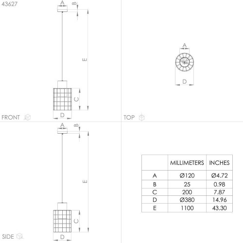 Pendul MILLIGAN 43627, Ø380 mm, E27, 1X40W, IP20, oțel, negru, alb
