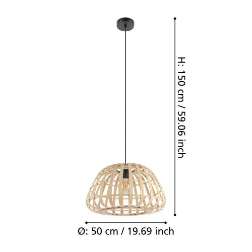 Pendul MONTEZUELO 390151, Ø500 mm, E27, 1X40W, IP20, oțel, negru, lemn, natural