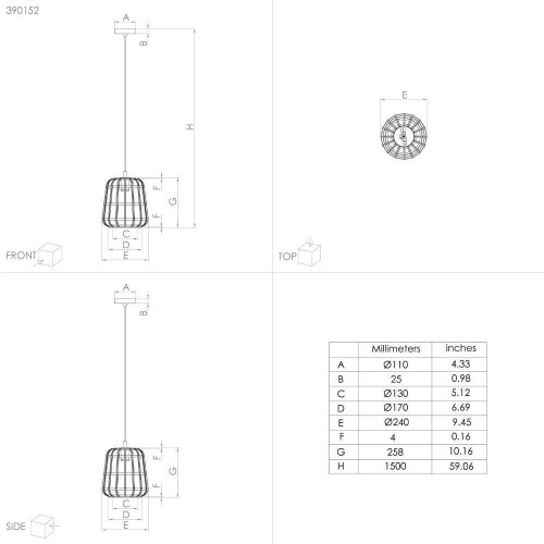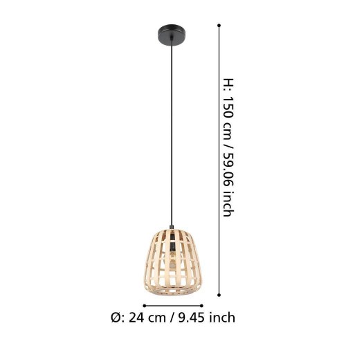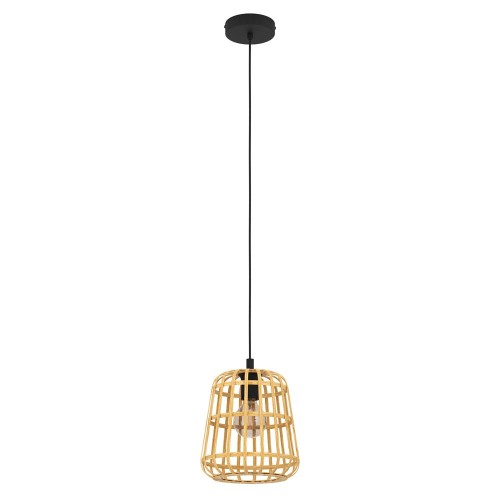 Pendul MONTEZUELO 390152, Ø240 mm, E27, 1X40W, IP20, oțel, negru, lemn, natural