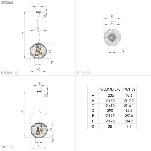 Pendul ORBETELLO 390065, Ø450 mm, E27, 3X40W, IP20, oțel, negru