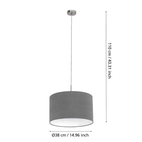Pendul PASTERI 31573, Ø380 mm, E27, 1X60W, IP20, oțel, nichel mat, textil, gri
