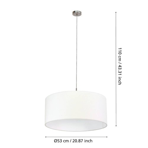 Pendul PASTERI 31575, Ø530 mm, E27, 1X60W, IP20, oțel, nichel mat, textil, alb