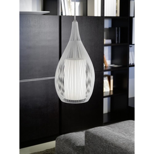 Pendul RAZONI 92251, Ø190 mm, E27, 1X60W, IP20, oțel, alb, sticlă satinată, oțel, albă
