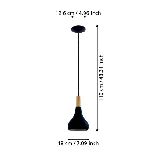 Pendul SABINAR 900161, Ø180 mm, E27, 1X40W, IP20, oțel, lemn, negru, maro