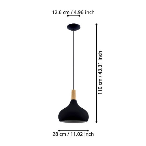 Pendul SABINAR 900162, Ø280 mm, E27, 1X40W, IP20, oțel, lemn, negru, maro