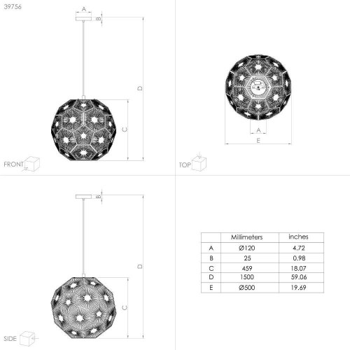 Pendul SKOURA 39756, Ø500 mm, E27, 1X60W, IP20, oțel, negru, alamă