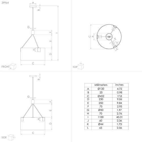 Pendul TORTOLA 1 39964, Ø450 mm, E27, 3X40W, IP20, oțel, alamă matisată, textil, negru, alamă