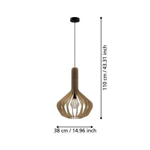 Pendul VELASCO 900152, Ø380 mm, E27, 1X40W, IP20, oțel, negru, lemn, arțar