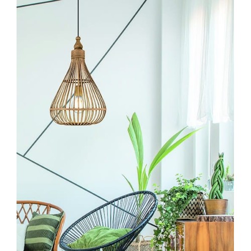 Pendul vintage AMSFIELD 49772, Ø350 mm, E27, 1X60W, IP20, oțel, maro, lemn, maro
