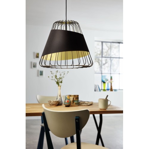 Pendul vintage AUSTELL 49509, Ø430 mm, E27, 1X60W, IP20, oțel, negru, oțel, textil, negru, auriu