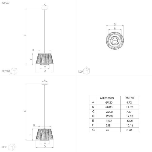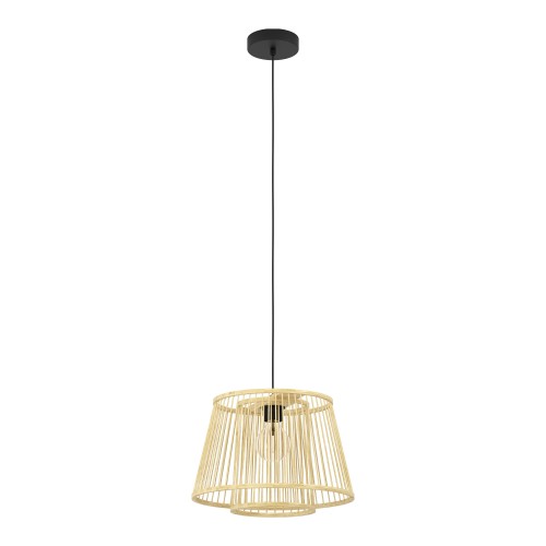 Pendul vintage HYKEHAM 43852, Ø380 mm, E27, 1X40W, IP20, oțel, negru, lemn, natural