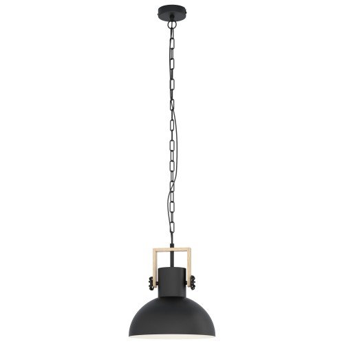 Pendul vintage LUBENHAM 43162, Ø300 mm, E27, 1X28W, IP20, oțel, lemn, negru, maro