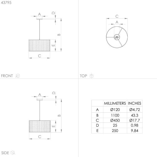 Pendul vintage MANBY 43795, Ø450 mm, E27, 1X40W, IP20, oțel, negru
