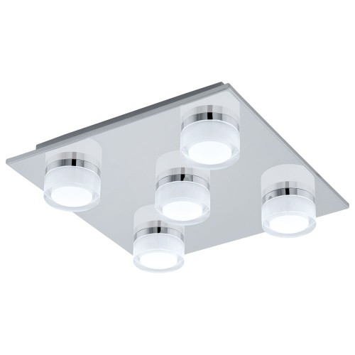 Plafonieră baie ROMENDO 1 96544, LED, 5X5,4W, 3000K, IP44, oțel, crom, plastic, transparent, satinat