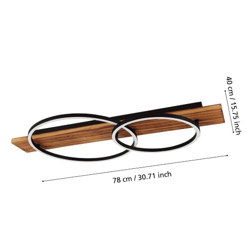 Plafonieră BOYAL 99408, LED;LED, 1X12W;1X12W, 3000K, IP20, oțel, lemn, negru, maro rustic, plastic, alb