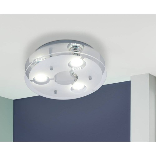 Plafonieră CABI 75212, Ø270 mm, GU10, 3X2,8W, IP20, inox, crom, sticlă satinată, alb, transparent