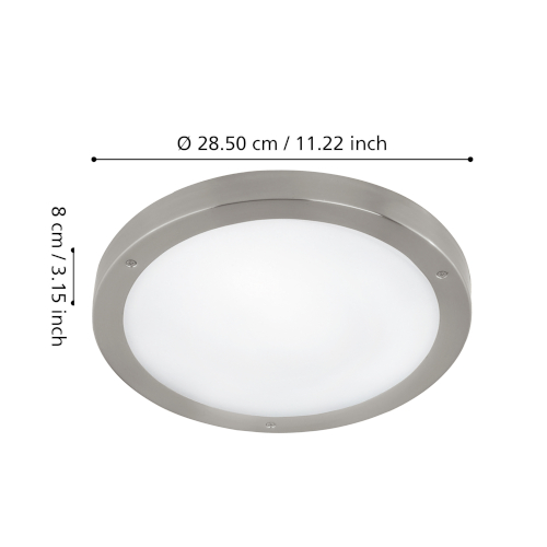 Plafoniera exterior EGLO VENTO 1 94121, LED 11W 950lm 3000K IP44 Ø285mm, Sticla, Inox