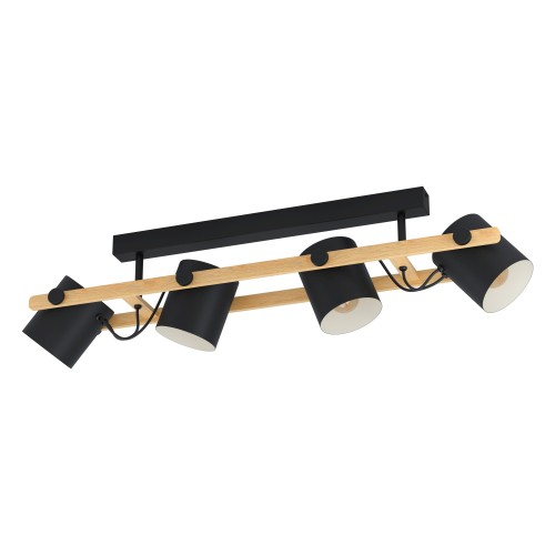 Plafonieră HORNWOOD 43558, E27, 4X28W, IP20, oțel, negru, crem, lemn, maro