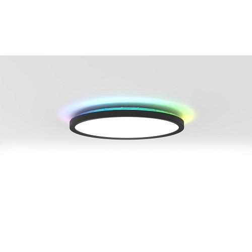 Plafoniera LED 18W RGBW cu telecomandă este un corp de iluminat modern, ideal pentru spații interioare precum băi, holuri sau camere de zi. Are o formă rotundă și un design simplu, de culoare neagră, care se integrează ușor în diverse stiluri de amenajare.