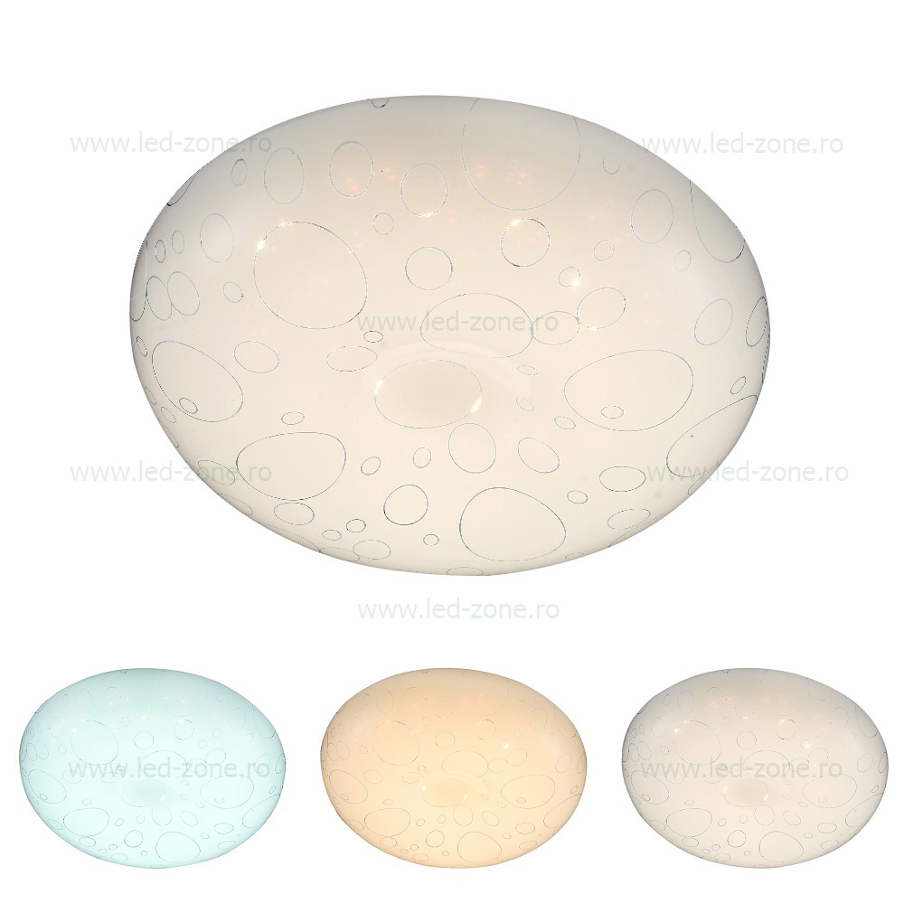 Lumina se schimba pe rand la fiecare oprit - pornit din intrerupator, astfel puteti obtine lumina dorita din cele 3 nuante, cu aceeasi plafoniera.