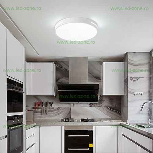 Plafoniera LED poate face diferenta dintre un spatiu monoton si special. Stilul este cu adevarat contemporan, deoarece nu exista becuri voluminoase sau suporturi de iluminat pentru locuinte. Sursa de tip LED se caracterizeaza prin consum redus, luminozitatea ridicata si durata de viata indelungata. Un flux luminos suficent si poate degaja atat o lumina calda (2700K), ideala pentru momentele petrecute intre prieteni si familie, cat si o lumina rece (6500K), energizanta, similara cu lumina naturala.