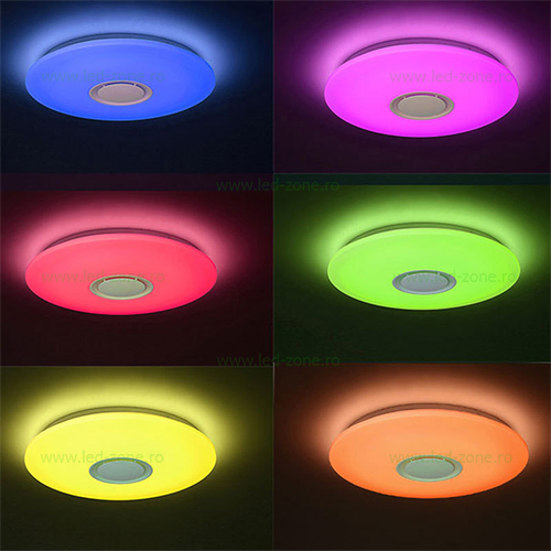Plafoniera RGB cu difuzor bluetooth si telecomanda, iti ofera pe langa o gama variata de culori si functia de redare muzica, dupa ce ai conectat telefonul la aceasta.