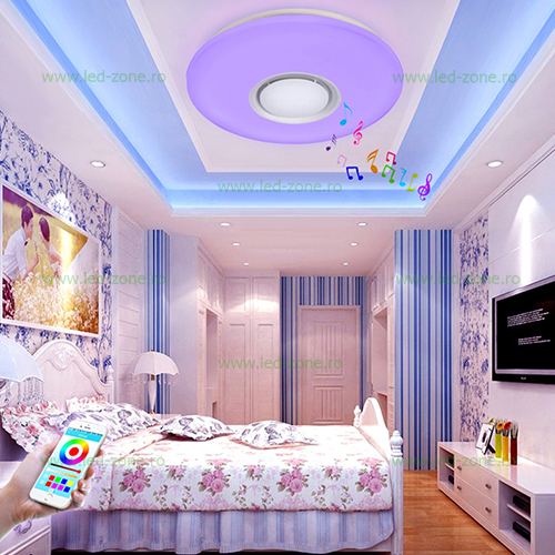 Descriere Plafoniera LED 72W RGBW Difuzor Bluetooth Telecomanda