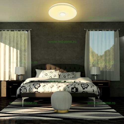 Utilizare recomandata: iluminat decorativ si functional in dormitoare, livinguri, birouri, camere de tineret sau spatii moderne, unde se doreste atat lumina de ambianta, cat si redare muzicala prin Bluetooth.