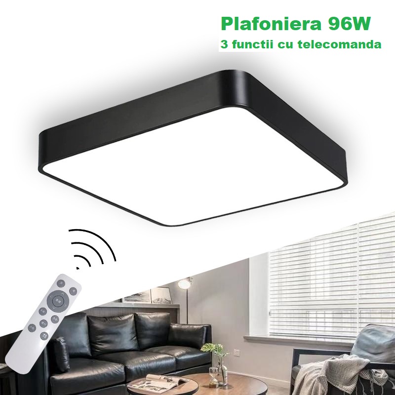 Descriere Plafoniera LED 96W Patrata 3 Functii cu Telecomanda LZ1125