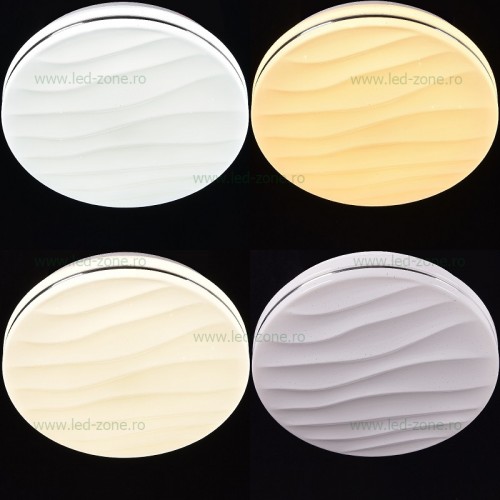 Lumina se schimba pe rand la fiecare oprit - pornit din intrerupator si din telecomanda, astfel puteti obtine lumina dorita din cele 3 nuante, cu aceeasi plafoniera.