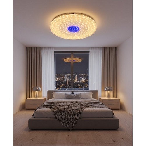 Plafoniera rotundă de 52W cu funcționalitate CCT + Albastru este un corp de iluminat modern, ideal pentru spații rezidențiale.