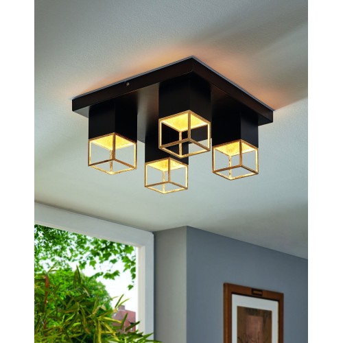 Plafonieră MONTEBALDO 97731, GU10, 4X4,5W, IP20, oțel, negru, auriu