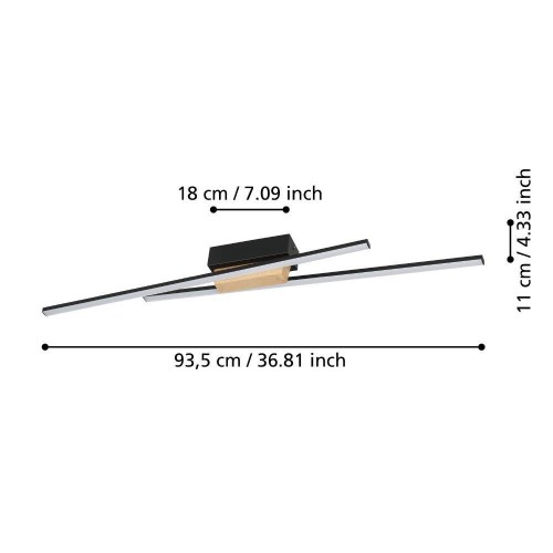Plafonieră PANAGRIA 900488, LED, 2X13W, 3000K, IP20, aluminiu, oțel, lemn, negru, maro, plastic, alb