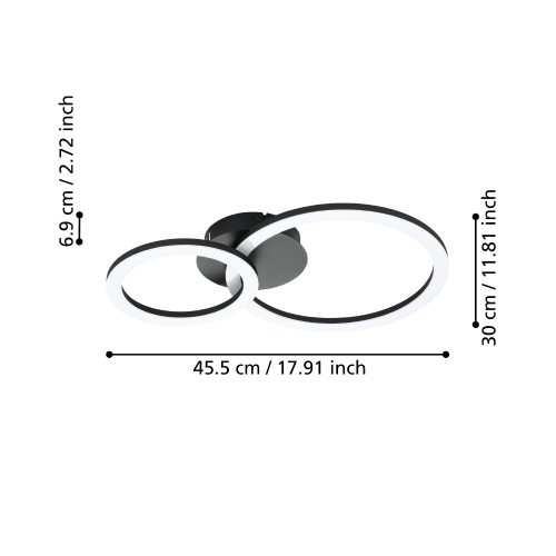 Plafonieră PARRAPOS-Z 900322, LED, 15W, 3000-6500K, IP20, oțel, negru, plastic, alb