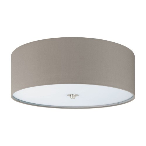 Plafonieră PASTERI 94919, Ø475 mm, E27, 3X25W, IP20, oțel, nichel mat, textil, sticlă, gri maroniu